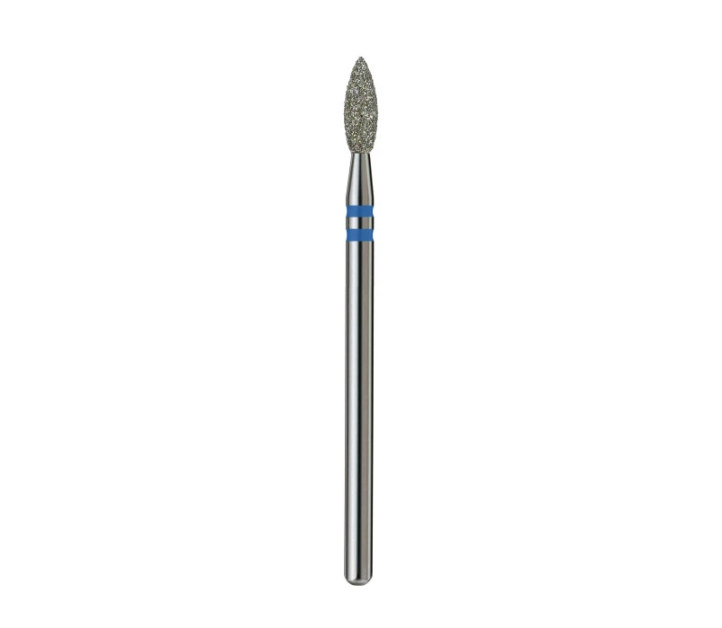 Éles láng alakú gyémánt csiszolófej 2,7 mm Kék (Prémium) Precíz gyémántmaró a kutikula, pterigium és oldalsó bőrredők kezelésére, valamint a leváló bőr és elszarusodott részek eltávolítására. Két rétegű gyémántbevonat biztosítja az egyenletes és hatékony munkát.