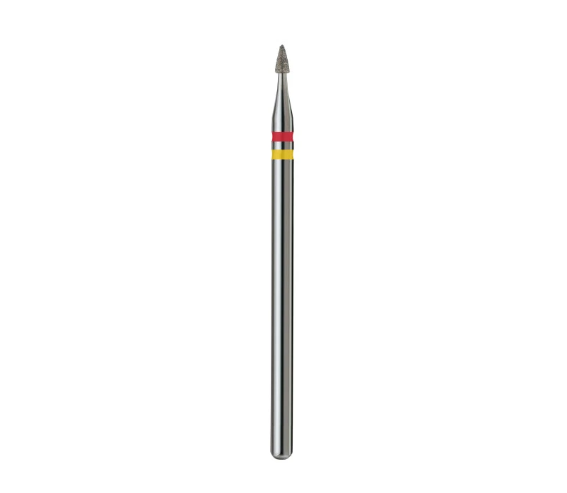 A Hegyes kúp alakú gyémánt csiszolófej – 1,6 mm piros+sárga (Prémium) ideális a kutikula megemeléséhez és kitisztításához, valamint az oldalsó bőrredők ápolásához. Tökéletes a leválások, természetes körömmaradványok és anyagmaradékok eltávolításához a köröm alól, valamint a nehéz helyek precíz megmunkálásához.