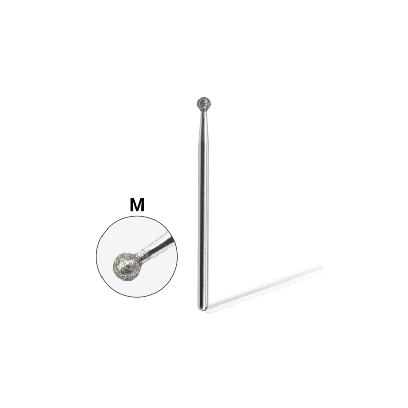 Gyémánt gömb csiszolófej, közepes finomságú. Gépi manikűrözés során a bőrszálkák és a kutikula eltávolítására használjuk.